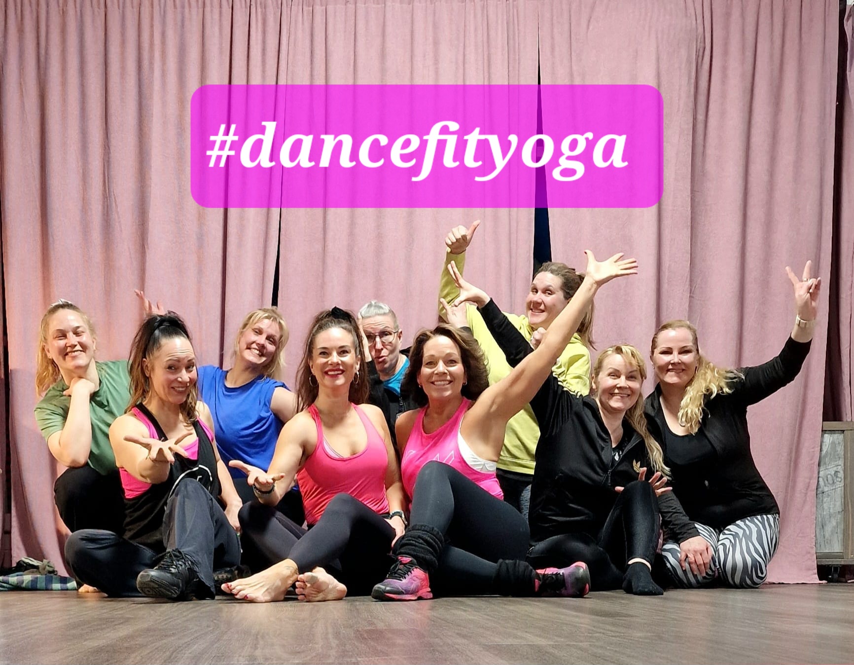 DanceFitYoga on ryhmäliikunta konsepti, jossa yhdistyy kolme erinomaista lajia. Tanssi, lihaskuntoharjoittelu sekä dynaaminen jooga.